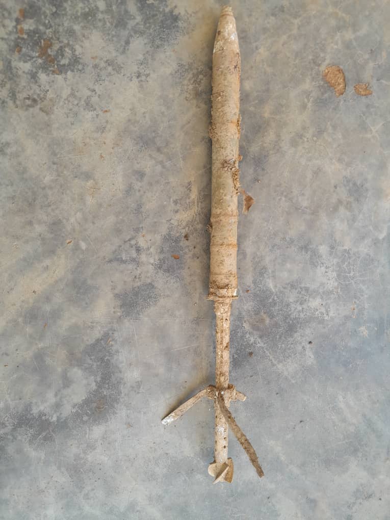 Il s’agit d’une roquette du type RPG7 qui a été découverte non loin du centre de santé de Masosi, au bloc KYAVISIKO, dans la partie Sud-est de la commune. Une cultivatrice qui l’a découvert pendant ses travaux de champ, a immédiatement alerté le chef de base.